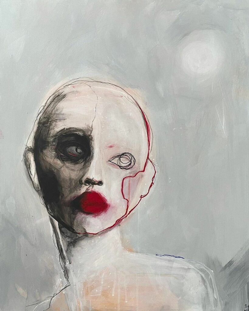 Accueil Artwork Artwork #Peintures numériques réalisées sur Artrage Rouge à lèvre La part de l’ombre femme au baillon hantise Mémoire Saturnale